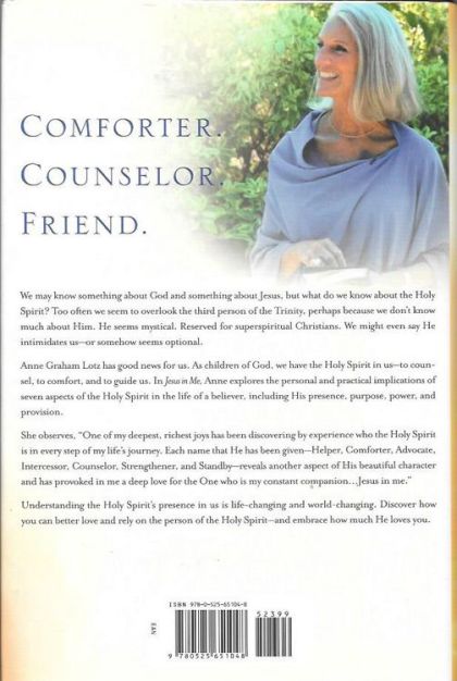 USA TODAY, PUBLISHERS WEEKLY AND ECPA BESTSELLER • The internationally recognized Bible teacher and daughter of Billy Graham combines unique biblical insights and her own personal stories to show how the Holy Spirit guides us in our decisions, comforts us in pain, and stays by our side at all times, enriching our daily lives. In Jesus in Me, Anne Graham Lotz draws on her rich biblical knowledge as well as her personal journey—including her recent cancer diagnosis—to help us understand that the Holy Spirit is not a magic genie, a flame of fire, or a vague feeling. He is a Person who prays for us, guides us in our relationships and decisions, comforts us in pain, and stays by our side at all times. In this seminal teaching, she explores seven key aspects of the Holy Spirit that will revolutionize how you understand and relate to this vital third Person in the Trinity. As Anne writes, “One of my deepest, richest joys has been discovering by experience who the Holy Spirit is in every step of my life’s journey. Each name that He has been given—Helper, Comforter, Advocate, Intercessor, Counselor, Strengthener, and Standby—reveals another aspect of His beautiful character and has provoked in me a deep love for the One who is my constant Companion . . . Jesus in me.” Discover how to better love and rely on the person of the Holy Spirit—and embrace how much He loves you through His presence, power, and provision in our daily lives.Praise for Jesus in Me“With plentiful biblical references, Lotz encourages those who already rely on Jesus to step into a purpose-filled life led by the Holy’s Spirit’s guidance. Christians who desire to live a life of greater purpose to glorify God will be awed by Lotz’s impassioned exploration of the role of the Holy Spirit in her life.”—Publishers Weekly
