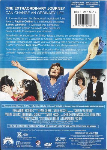 Since its London and Broadway stage debut, playwright Willy Russell 's Shirley Valentine has proven an excellent showcase for any number of talented actresses ( Loretta Swit won the 1989 Sarah Siddons Award for her work in the Chicago production). In the film version of Shirley Valentine , Pauline Collins re-creates the role that had previously brought her theatrical fame and a Tony Award. Spending the bulk of the film speaking directly to the audience, the titular Shirley ( Collins ), a middle-aged Liverpool housewife, reveals her innermost thoughts and fears in a manner that is both insouciant and poignant. Once an incorrigible anti-establishment rebel, Shirley now chafes under the plodding insensitivity of her husband Joe ( Bernard Hill ). Her life enters a new and exciting phase when, after her best friend Jane ( Alison Steadman ) wins an all-expenses-paid vacation to Greece, Shirley is given the opportunity to travel to faraway places without her husband. Shirley Valentine represents the second felicitous collaboration between playwright Willy Russell and director Lewis Gilbert ; the first was the equally marvelous Educating Rita (1983). — Hal Erickson