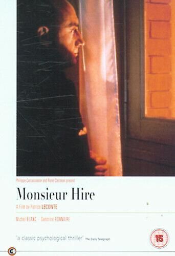 Lonely and shy bachelor Monsieur Hire ( Michel Blanc ), suspected in the murder of a girl, secretly watches his young, attractive neighbor Alice ( Sandrine Bonnaire ) through the window. Once, when lightning flashes during a thunderstorm, she notices his face in the window and comes to him to find out what he is after. Adapting Georges Simenon 's novel, Patrice Leconte emphasized the psychological drama rather than the detective story and created a film about loneliness and voyeurism; his cold precision is reminiscent of Alfred Hitchcock or Fritz Lang . The low-key acting and moody soundtrack add a lot, but it's the director who deserves the most accolades, as he manages, with only glances and gestures, to achieve a degree of eroticism that other films fail to reach even through explicit sex scenes. — Yuri German
