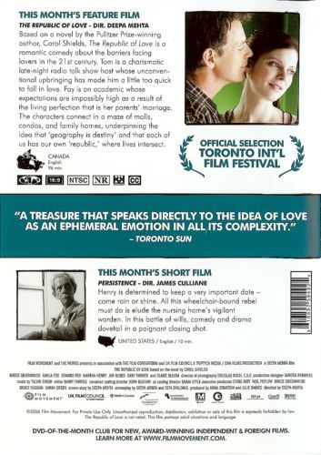 A story of love and enchantment set in the coldest of winters, it explores the issues, dilemmas and barriers facing the lucky and unlucky in love in the 21st Century, based on the novel of the same name by Pullitzer Prize-winning author Carol Shields. Tom is a charismatic late-night radio talk show host, whose unconventional upbringing has made him a little too quick to fall in love and marry, resulting in three divorces before the age of 40. Fay is his total opposite; her romantic ideal has not yet been attained and is unlikely ever to be due to her impossibly high expectations as a result of living with the perfection that is her parents' rock solid marriage. This unlikely pairing proves the rule that in love, there are no rules and the couple meet and fall deeply in love at first sight. All is faultless, until Fay's parents' marriage breaks down suddenly, out of nowhere, after 40 years of wedded bliss. Fay and their relationship are thrown into turmoil. Will Tom be able to persuade his naturally cautious and terminally confused fiancée to work through all the damage and chaos? The characters' connect in a maze of situations, underpinning the idea that 'geography is destiny' and that each of us has our own 'republic', where lives intersect.