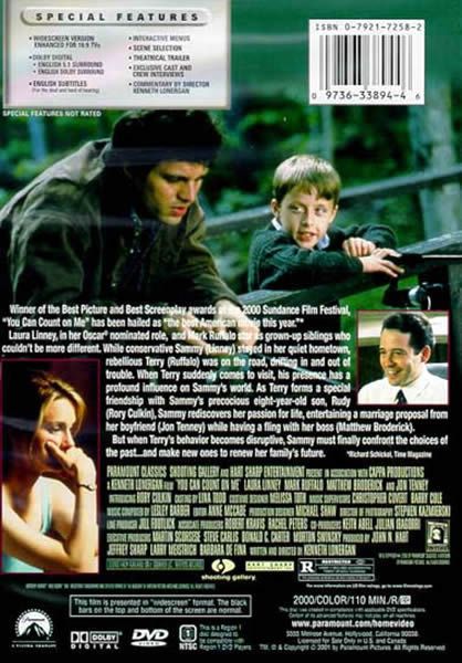 Kenneth Lonergan , the co-screenwriter for Analyze This (1999), makes his directorial debut with this sensitive portrait of a pair of grown siblings. Sammy and Terry Prescott ( Laura Linney and Mark Ruffalo ) were orphaned as children after their parents were killed in a car accident. Since then, the two have taken drastically divergent paths. Sammy is a single mother who leads a quiet, stable life in a small town in upstate New York. A fiercely protective mother, she shields her young son Rudy ( Rory Culkin ) from all information about his absentee father. She is also involved with Bob ( Jon Tenney ), a well-meaning but less-than-exciting mate, both in and out of bed. Terry, by contrast, is a troubled, self-destructive soul eking out a nomadic existence. When he abandons his pregnant girlfriend to borrow money from his sister, Sammy finds her stable world disrupted. A bond soon develops between Terry and Rudy; over the objections of his mother, Terry takes the tyke fishing and shares old family secrets. Meanwhile, Terry's presence inspires Sammy to break out of her quiet life. This film won the Grand Jury Prize at the 2000 Sundance Film Festival. — Jonathan Crow