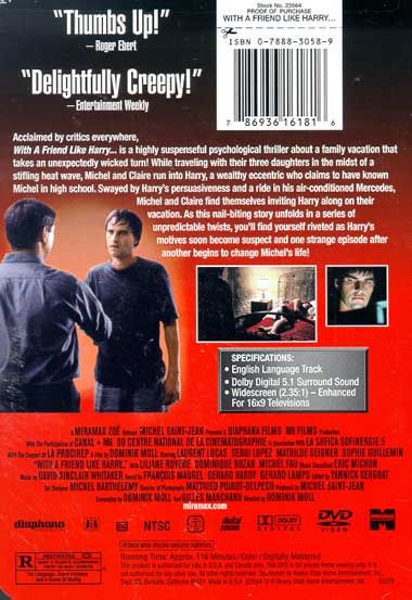 Dominik Moll directs this black comedy about a family outing gone to hell. The film opens with Michel ( Laurent Lucas ) and Claire ( Mathilde Seigner ) on the edge of a nervous breakdown in a cramped hot car with three screaming children. At a roadside rest stop, Michel meets Harry ( Sergi Lopez ) who, after some encouragement, recalls that they went to high school together. Harry and his girlfriend Plum ( Sophie Guillemin ) weasel their way into Michel and Claire's life, and soon the two are following the haggard family to their tumbledown summer cottage. Though he seems friendly enough, Michel and Claire start to notice that something is not quite right with their newfound friend — he recites from memory a poem Michel wrote 20 years ago, he suddenly buys them an expensive new Jeep when their old car dies, and he has a tendency to kill people who get on his nerves. This film was screened in competition at the 2000 Cannes Film Festival. — Jonathan Crow