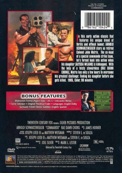Shortly after The Terminator wrote his name in bold neon lights across box-office grosses, this action thriller took advantage of the hitherto (almost) unexploited comic side of star Arnold Schwarzenegger and paired him with Rae Dawn Chong. Colonel Matrix (Schwarzenegger) is retired and living peaceably with his 10-year-old daughter when she is kidnapped by the henchmen of an exiled Latin American dictator. The dictator's plan is to reinstate himself in power by eliminating the president of his country, using Matrix to kill him (or he will kill the kidnapped daughter). Matrix escapes from the plane that is supposed to be carrying him to his mission and then proceeds to go from one violent confrontation to the next as he hunts down the dictator and moves to rescue his daughter. Helping him is Cindy (Chong), who has her own reasons for wanting the dictator dead. — Eleanor Mannikka