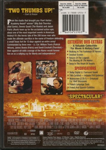Re-teaming Dennis Quaid with John Lee Hancock, the director of 2002's The Rookie, The Alamo retells the story of the historic 1836 battle in the Texan War of Independence. Facing 4,000 Mexican troops, 186 Texan soldiers and volunteers — including William Travis (Patrick Wilson), Davy Crockett (Billy Bob Thornton), and Jim Bowie (Jason Patric) — retreat within the walls of the Alamo, a Franciscan mission that was converted into a military fort. Once inside, the men prepare themselves for what will be a bloody battle to the death, as General Sam Houston (Quaid) leads the charge from the outside. Emilio Echevarria and Jordi Molla co-star. — Matthew Tobey