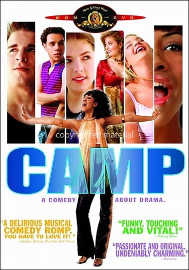 Tony-nominated actor Todd Graff makes his directorial debut with the musical comedy Camp, featuring an ensemble cast of newcomers. Guitarist Vlad (Daniel Letterle) attends Camp Ovation, the summer theater camp for budding actors, dancers, and musicians. Finding himself to be one of the only hetero boys around, he soon befriends nice girl Ellen (Joanna Chilcoat). Meanwhile, openly gay Michael (Robin de Jesus) develops a crush on him. This sparks dramatic confrontations among fellow campers Jenna (Tiffany Taylor), Jill (Alana Allen), and Fritzi (Anna Kendrick). The whole camp is run by Bert Hanley (Don Dixon), a washed-up Broadway songwriter who decides to enlist the help of his young campers to put together a new production. Features musical numbers by Stephen Sondheim and the Rolling Stones, as well as original tunes from composer Michael Gore and lyricist Lynn Ahrens. Camp was nominated for the Grand Jury Prize at the 2003 Sundance Film Festival. — Andrea LeVasseur