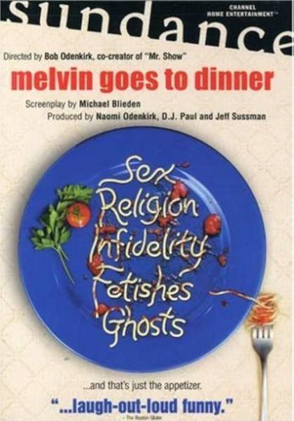 Mr. Show alumnus Bob Odenkirk's directorial debut, Melvin Goes to Dinner, is based on the play Phyrogiants! by Michael Blieden, who also adapted the script for the screen and stars in the film's titular role. Melvin has just broken up with his girlfriend, Trenice (Melora Walters), and has met up with his friend Joey (Matt Price) and two women, Alex (Stephanie Courtney) and Sarah (Annabelle Gurwitch), whose relationship to the men remains ambiguous. From there, the bulk of the action takes place around a table at a restaurant, as the four bare their innermost secrets and discuss everything from ghosts to stewardesses to masturbation. The film was shot simultaneously on five hand-held cameras in order to capture the essence and idiosyncrasies of the constantly overlapping conversations. Featuring appearances by Odenkirk, David Cross, Maura Tierney, and Jack Black in an unbilled cameo as a mental patient, and a score by Michael Penn, Melvin Goes to Dinner was the winner of the Audience Award for First Film at the 2003 South by Southwest Film Festival, the Best American Feature Award at the 2003 Avignon Film Festival, and the Best Picture Award at the Phoenix Film Festival. — Matthew Tobey