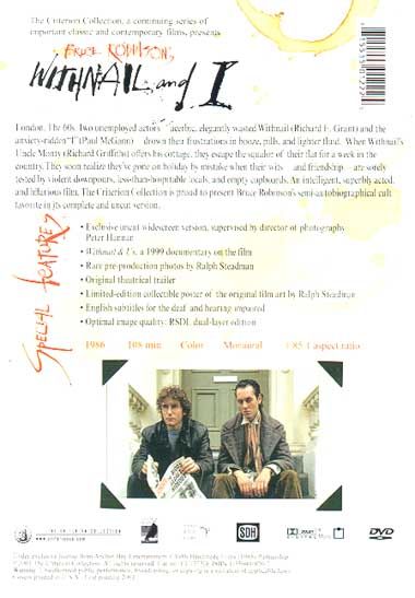 Screenwriter Bruce Robinson made his directorial debut with this British comedy. Withnail (Richard E. Grant) is an unsuccessful, pill-popping actor; "I", or Marwood (Paul McGann), is Withnail's roommate and another equally underemployed actor. The time is 1969: Withnail is fast becoming a burned-out relic of the sixties, while Marwood is trying to reassimilate into society. The two take a trip to the country in hopes of rejuvenating themselves, but things go from worse to even worse. Given the intimacy and insight of the screenplay and dialogue, one shouldn't be surprised that Bruce Robinson (who adapted the film from his own novel) based Withnail and I on his own experiences. The film proves that certain "Age of Aquarius" types were just as bollixed-up in Britain as they were in America. — Hal Erickson