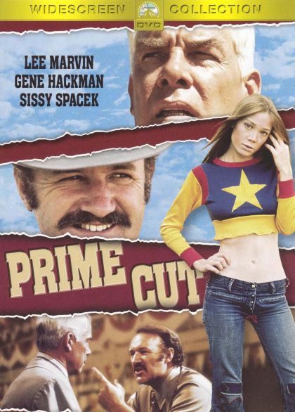 Michael Ritchie, better known for his gentle satires of American social institutions, enters Don Siegel territory in the unusual crime thriller Prime Cut. Lee Marvin is surly collection agent Nick Devlin, who is hired by Chicago racketeer Jake (Eddie Egan) to collect an overdue payment from Kansas cattle baron Mary Ann (yes, Mary Ann!) (Gene Hackman). When Devlin travels west to get Jake's money from Mary Ann, he finds the cattle king mixed up in complex drug deals and pimping wild women — two of which are Poppy and Violet (Sissy Spacek and Janit Baldwin — both in their film debuts). — Paul Brenner
