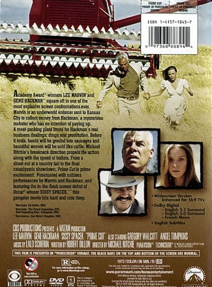 This offbeat blend of action and satire is a memorable outing from the "anything goes" era Hollywood experienced in the 1970s. Prime Cut delivers the amount of punch-ups, shoot-outs, and tough-guy talk expected from an action film, but Robert Dillon's inspired, unusual script puts a fresh twist on these action-film staples by placing them in a novel rural setting and giving the storyline a satirical voice. Thus, the viewer is treated to scenes where Gene Hackman gives a monologue in which he uses cattle-farming metaphors to explain how the Chicago crime syndicate is growing weak and a bizarre scene where Lee Marvin and Sissy Spacek are chased by a thug driving a huge thresher instead of the usual automobile. Director Michael Ritchie, better known for purely comedic fare like The Bad News Bears, conducts the pop-art thrills with a light, witty touch and gets great performances from his leads: Marvin is all cool machismo, Hackman is a blustery delight as his unrefined nemesis, and Spacek and Angel Tompkins add solid support as two very different women mixed up in the criminal capers. All in all, Prime Cut might be a little too odd for viewers who like their action movies straightforward, but it is perfect fare for cult-film fans, who will appreciate its mixture of punchy action and crime-as-a-business satire. — Donald Guarisco