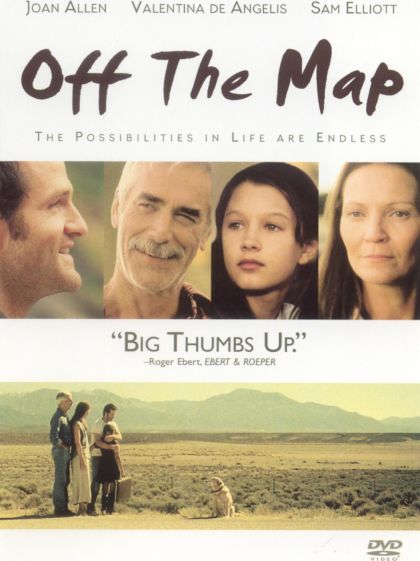Off the Map avoids conventional drama (hardly any event leads to an outcome you could expect) but the lean, sharp dialogue and superb performances make this movie a rich, human comedy. A young girl named Bo, living in the New Mexico desert, rebels against her bohemian parents by reading Forbes magazine and applying for credit cards. Her father Charley (Sam Elliott, Tombstone) has sunk deep into a paralyzing depression; her resilient, industrious mother Arlene (Joan Allen, The Upside of Anger) alternates between gently supporting Charley and railing against his zombie-like state. Into this off-balance family comes a tax auditor (Jim True-Frost, Singles), who--after being stung by a bee and lapsing into a sudden fever--becomes an accidental catalyst for change. In her movie debut as Bo, Valentina de Angelis gives a wonderful performance, head and shoulders above most actors her age. Campbell Scott's direction, as with his first film Big Night, is warm but not sappy; he has a gift for letting a story wander without it ever getting lost. The New Mexico landscape glows in the sun and helps give Off the Map a quiet but mysterious vision of life. --Bret Fetzer
