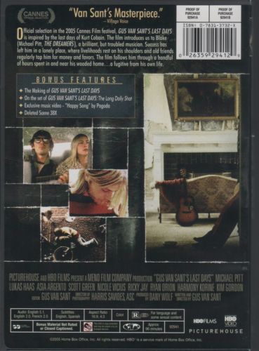 Filmmaker Gus Van Sant wrote and directed this meditation on stardom and its costs, inspired in part by the life and death of rock musician Kurt Cobain. Blake (Michael Pitt) is the leader of an influential alternative rock band who has unexpectedly won a large degree of fame and fortune. Depressed and unsure of what to do with himself or his success, Blake wanders about the run-down mansion he calls home and the visits the woods nearby. While a handful of friends live with Blake, he prefers to avoid them, as they often seem more interested in money or help with their music than in his friendship; meanwhile, Blake is also confronted by a handful of fans, his agent, and a gentleman who sells advertising space in a telephone directory and has no idea who Blake is. As Blake goes through the motions of his day, he tries to decide what he should do next, and what might finally free him from his ennui. Shot and edited in the same languid, low-key manner as his films Elephant and Gerry, Last Days also stars Lukas Haas, Asia Argento, Scott Green, Ricky Jay, and Harmony Korine. Kim Gordon of the band Sonic Youth also appears in the film, while her husband and bandmate Thurston Moore was a consultant for the musical score; both were friends of Kurt Cobain and toured in tandem with Nirvana on several occasions. — Mark Deming