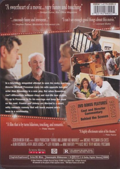 In a hilariously misguided attempt to save his rocky marriage, director Michael Pressman casts his wife opposite hot-shot actor Alan Rosenberg in a new play. But when Rosenberg can't differentiate between stage and real-life love scenes, it's up to Pressman to fix his marriage and keep the show on the road. Frankie & Johnny Are Married is a smart, witty romantic comedy that will touch anyone who's been in a relationship.