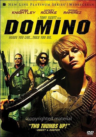 The (mostly) true story of a Hollywood princess turned bounty hunter is told in this witty action-drama from director Tony Scott. Domino Harvey (Keira Knightley) was the daughter of famed actor Laurence Harvey (played by Jesse Pate) who passed on when Domino was only eight years old. Domino's mother, former fashion model Paulene Stone (played by Jacqueline Bisset and renamed (%Sophie Wynn) in the film), strove to give her daughter a comfortable life, but Domino was naturally rebellious, and after a contentious stint in boarding school, a brief career as a runway model, and a fling with the fashion business, Domino was looking for something more exciting. She found it when he met Ed Mosbey (Mickey Rourke), an ex-con who had gone on to a successful career as a "bail recovery agent" — in short, a bounty hunter. Ed also taught others how to join his profession, and Domino took his course and joined his team, along with Choco (Edgar Ramirez), a headstrong bail agent who took an immediate fancy to Domino. Domino, Ed, and Choco became a successful team — successful enough that television producer Mark Heiss (Christopher Walken) asked them to become the subject of a television reality series. However, it was after the cameras were turned on Domino that her life got truly crazy. Bail bondsman Claremont Williams III (Delroy Lindo) had hired Domino and her friends for a risky case, and soon Domino, Ed, and Choco were chasing missing men and money while landing in hot water with both the FBI and the Mafia. Domino was loosely based on Domino Harvey's real life story; sadly her personal life was as reckless as her career, and Domino died as a result of drug abuse on June 27, 2005, after this film was completed. The film also features Lucy Liu, Mena Suvari, Macy Gray, and Dabney Coleman. — Mark Deming