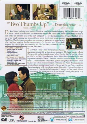 Keanu Reeves and Sandra Bullock team for the first time since Speed for this heart-lifting story of a love that transcends time. It begins when Kate moves out of her visually stunning lake house and leaves a note for the tenant, architect Alex Wyler. They begin a correspondence and soon come to realize they are meant for each other... and that, somehow, they live two years apart. Can they ever meet? What would happen if they tried? Magical and emotionally rich, The Lake House is a love story for 2004, for 2006, for all times.