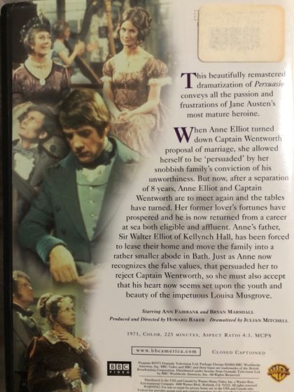When Anne Elliot turned down Captain Wentworth's proposal of marriage, she allowed herself to be 'persuaded' by her snobbish family's conviction of his unworthiness. But now, after a separation of 8 years, Anne Elliot and Captain Wentworth are to meet again and the tables have turned. Her former lover's fortunes have prospered and he is now returned from a career at sea both eligible and affluent. Anne's father, Sir Walter Elliot of Kellynch Hall, has been forced to lease their home and move the family into a rather smaller abode in Bath. Just as Anne now recognizes the false values, that persuaded her to reject Captain Wentworth, so she must also accept that his heart seems set upon the youth and beauty of the impetuous Louisa Musgrove.