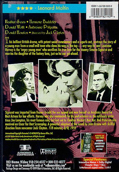 Signoret was imported from France to add the sex appeal and won herself an Academy Award for Best Actress for her efforts. Harvey was also nominated for his performance as the ruthlessly ambitious Joe Lampton, his most famous role, but lost out to Charlton Heston's Ben Hur. Neil Paterson also received an Oscar for Best Screenplay. A powerful adaption of the novel by John Braine with skillful direction from newcomer Jack Clayton.