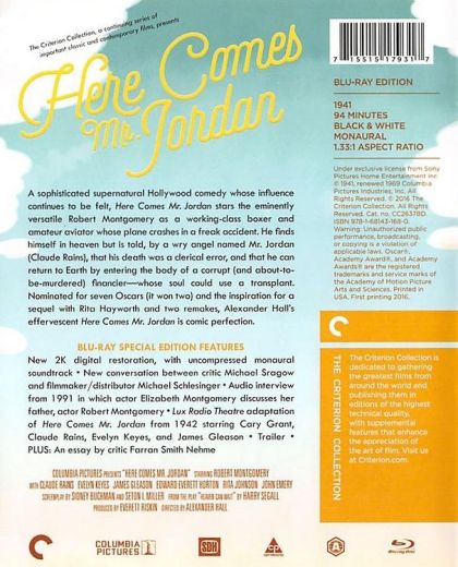 A two-time Academy Award-winning film (1941, Best Original Story, Best Screenplay) based on the play Heaven Can Wait, Here Comes Mr. Jordan is a delightfully romantic comedy with exceptional performances and snappy dialogue.