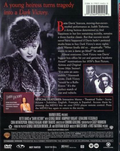 Bette Davis' bravura, moving-but-never-morbid performance as Judith Traherne, a dying heiress determined to find happiness in her few remaining months, remains a three-hankie classic. But that success would never have happened if Davis hadn't pestered studio brass to buy Dark Victory's story rights. Jack Werner finally did so…skeptically. "Who wants to see a dame go blind?" he asked.