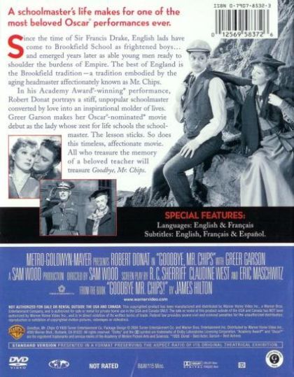 In his Academy Award-winning performance, Robert Donat portrays a stiff, unpopular schoolmaster converted by love into an inspirational molder of lives. Greer Garson makes her Oscar-nominated movie debut as the lady whose zest for life schools the schoolmaster. The lesson sticks. So does this timeless, affectionate movie. All who treasure the memory of a beloved teacher will treasure Goodbye, Mr. Chips.