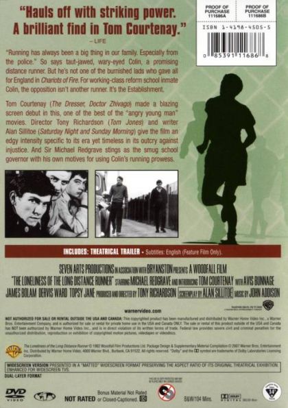 Tom Courtenay (The Dresser, Doctor Zhivago) made a blazing screen debut in this, one of the best of the "angry young man" movies. Director Tony Richardson (Tom Jones) and writer Alan Sillitoe (Saturday Night and Sunday Morning) give the film an edgy intensity specific to its era yet timeless in its outcry against injustice. And Sir Michael Redgrave stings as the smug school governor with his own motives for using Colin's running prowess.