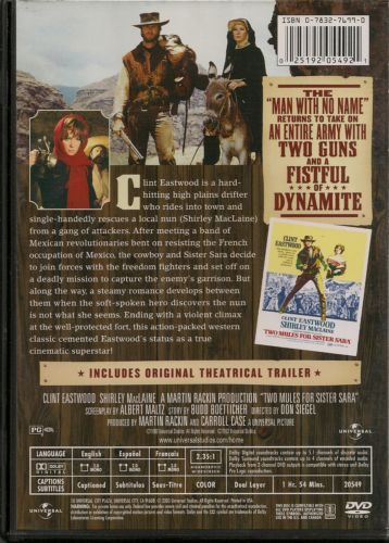 Clint Eastwood is a hard-hitting high plains drifter who rides into town and single-handedly rescues a local nun (Shirley MacLaine) from a gang of attackers. After meeting a band of Mexican revolutionaries bent on resisting the French occupation of Mexico, the cowboy and Sister Sara decide to join forces with the freedom fighters and set off on a deadly mission to capture the enemy's garrison. But along the way, a steamy romance develops between them when the soft-spoken hero discovers the nun is not what she seems. Ending with a violent climax at the well-protected fort, this action-packed western classic cemented Eastwood' status as a true cinematic superstar!