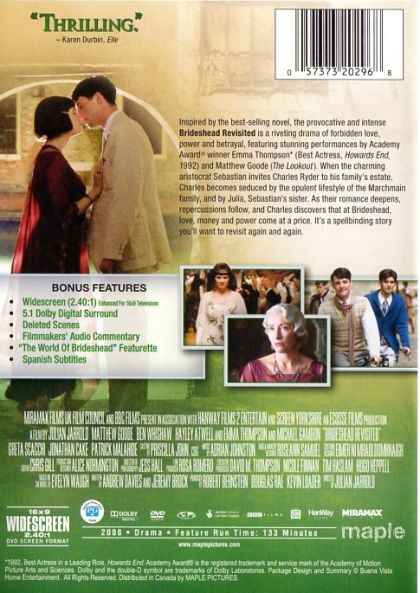 When the charming aristocrat Sebastian invites Charles Ryder to he family's estate, Charles becomes seduced by the opulent lifestyle of the Marchmain family, and by Julia, Sebastian's sister. As their romance deepens, Charles discovers that at Brideshead, love, money and power comes at a price.