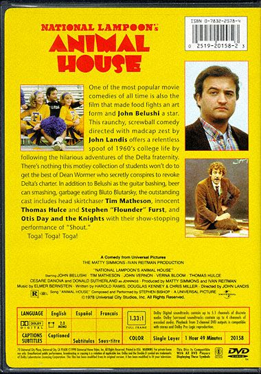 This title has been put on moratorium by the Vendor. This version is no longer available, however a new special edition will be released in the future One of the most popular movie comedies of all time is also the film that made food fights an art form and John Belushi a star. This raunchy, screwball comedy offers a relentless spoof of 1960's college life by following the hilarious adventures of the Delta fraternity. There's nothing this motley collection of students won't do to get the best of Dean Wormer who secretly conspires to revoke Delta's charter. In addition to Belushi as the guitar bashing, beer can smashing, garbage eating Bluto Blutarsky, the outstanding cast includes head skirtchaser Tim Matheson, innocent Thomas Hulce and Stephen "Flounder" Furst, and Otis Day and the Knights with their show-stopping performance of "Shout."