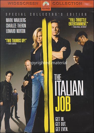 A team of high-class thieves avenge their mentor's death — with the help of his own daughter — in this big-budget remake of the 1969 British caper classic. The Italian Job stars Mark Wahlberg as Charlie, the mastermind of a daring Venice heist overseen by John (Donald Sutherland), a lifelong criminal who plans to retire from the fold with the earnings from his most recent take. Basking in the glow of a job well done at a secluded retreat in the Alps, the thieves — including the aptly-named Handsome Rob (Jason Statham), tech-geek Lyle (Seth Green), and hearing-impaired quipster Half Ear (Mos Def) — are ruthlessly double-crossed by one of their own, the taciturn, calculating Steve (Edward Norton). Time passes and each member of the group finds himself pursuing other opportunities in the States, until Charlie rallies them together for a revenge-motivated scheme designed to bilk Steve of all his misbegotten earnings. In order to cinch the deal, he even enlists John's reluctant safecracking-prodigy daughter, Stella (Charlize Theron), for an elaborate, incognito Los Angeles heist. But the paranoid Steve proves himself to be one step ahead of them at just about every turn, and Charlie finds that he'll have to make some daring last-minute changes to their plan if the team is to succeed. The Italian Job marked director F. Gary Gray's second 2003 release after the Vin Diesel vehicle A Man Apart. — Michael Hastings