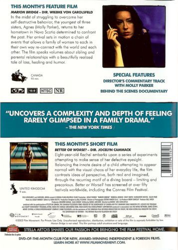 Wiebke von Carolsfeld was born, raised and educated in Germany (University of Cologne). Since moving to Canada, she has worked as a feature film editor for such filmmakers as Tim Southam (The Bay of Love and Sorrows), Jeremy Podeswa (The Five Senses, After the Harvest), Renny Bartlett (Einstein - Genie Nomination for Best Editing), Daniel MacIvor (Permission, Until I Hear From You) and others. She has directed two award-winning short films: From Morning On I Waited Yesterday and Spiral Bound, which have screened at festivals worldwide. Last year, she was the Director Observer on Atom Egoyan's feature Ararat. Film Movement is proud to present her debut feature film exclusively to you.
