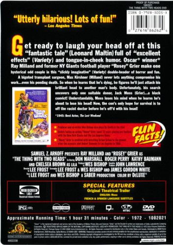 Get ready to laugh your head off at this "fantastic tale" (Leonard Maltin) full of "excellent effects" (Variety) and tongue-in-cheek humor. Oscar winner Ray Milland and former NY Giants football player "Rosey" Grier make one hysterical odd couple in this "slickly imaginative" (Variety) double-header of horror and fun.