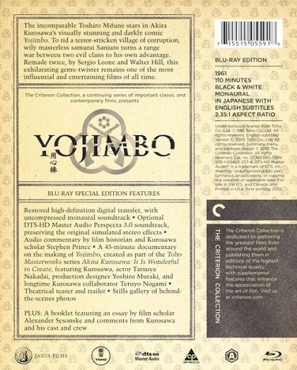 Toshiro Mifune portrays a Samurai who finds himself in the middle of a feud-torn Japanese village. Neither side is particularly honorable, but Mifune is hungry and impoverished, so he agrees to work as bodyguard (or Yojimbo) for a silk merchant ( Kamatari Fujiwara ) against a sake merchant ( Takashi Shimura ). He then pretends to go to work for the other, the better to let the enemies tear each other apart. Imprisoned for his "treachery," he escapes just in time to watch the two warring sides wipe each other out. This was his plan all along, and now that peace has been restored, he leaves the village for further exploits. Yes, Yojimbo was the prototype for the Clint Eastwood "Man with No Name" picture A Fistful of Dollars (1964). The difference is that Fistful relies on Eastwood for its success, whereas Yojimbo scores on every creative level, from director Akira Kurosawa to cinematographer Kazuo Miyagawa to Mifune's classic lead performance. — Hal Erickson
