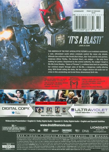 The future America is an irradiated waste land. On its East Coast, running from Boston to Washington DC, lies Mega City One - a vast, violent metropolis where criminals rule the chaotic streets. The only force of order lies with the urban cops called "Judges" who possess the combined powers of judge, jury and instant executioner. Known and feared throughout the city, Dredd is the ultimate Judge, challenged with ridding the city of its latest scourge - a dangerous drug epidemic that has users of "Slo-Mo" experiencing reality at a fraction of its normal speed. During a routine day on the job, Dredd is assigned to train and evaluate Cassandra Anderson, a rookie with powerful psychic abilities thanks to a genetic mutation. A heinous crime calls them to a neighborhood where fellow Judges rarely dare to venture - a 200 story vertical slum controlled by prostitute turned drug lord Ma-Ma and her ruthless clan.