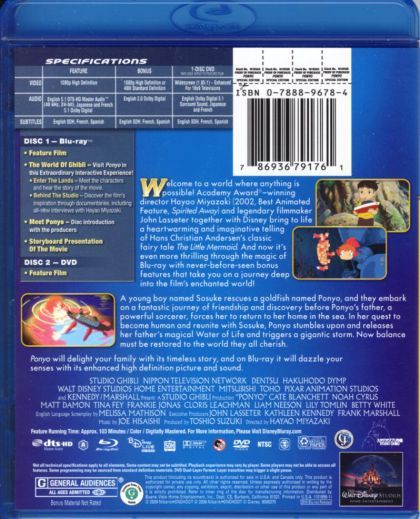 Welcome to a world where anything is possible! Academy Award–winning director Hayao Miyazaki (2002, Best Animated Feature, Spirited Away) and legendary filmmaker John Lasseter together with Disney bring to life a heartwarming and imaginative telling of Hans Christian Andersen’s classic fairy tale The Little Mermaid. A young boy named Sosuke rescues a goldfish named Ponyo, and they embark on a fantastic journey of friendship and discovery before Ponyo’s father, a powerful sorcerer, forces her to return to her home in the sea. But Ponyo’s desire to be human upsets the delicate balance of nature and triggers a gigantic storm. Only Ponyo’s mother, a beautiful sea goddess, can restore nature’s balance and make Ponyo’s dreams come true. Ponyo will delight your family with its magnificent animation and timeless story.