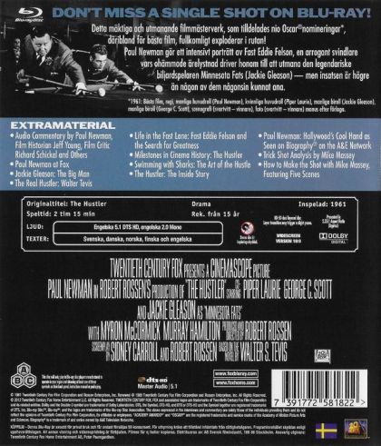 Paul Newman is electrifying as Fast Eddie Felson, an arrogant, amoral hustler who haunts backstreet pool rooms fleecing anyone who'll pick up a cue. Determined to be acclaimed as the best, Eddie seeks out the legendary Minnesota Fats, who's backed by Bert Gordon, a predatory gambler. Eddie can beat the champ, but virtually defeats himself with his low self-image. The love of a lonely woman could turn Eddie's life around, but he won't rest until he beats Minnesota Fats, no matter what price he must pay. Voted one of the year's ten best by "The New York Times" and "Time," and distinguished by 2 Academy Awards - Cinematography, Art Direction-Set Decoration (B&W), The Hustler is a dazzling cinematic triumph.
