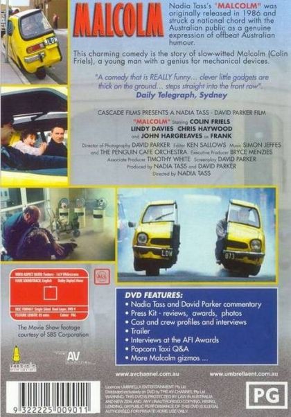 In this hilarious, award-winning comedy, Malcolm ( Colin Friels ) is an innocent, naive mechanical genius with a distinct gap where sexual and social awareness normally reside. He first gets into trouble when he builds his version of a streetcar and then takes it on a joyride through Melbourne — a definite no-no. That exploit costs him his job as a maintenance man for the streetcar company. Out of work, Malcolm is forced to take in two boarders who are actually a con man and his female companion. The con artist is intrigued by all of Malcolm's mechanical inventions, and cash registers are clicking at the back of his mind. It does not take him long to convince Malcolm to join them in robbing a bank — which turns out to be even more adventurous than the streetcar ride through Melbourne. Director Nadia Tass and her husband, co-producer, scripter and cinematographer David Parker followed up with an enjoyable and funny Rikky and Pete . — Eleanor Mannikka