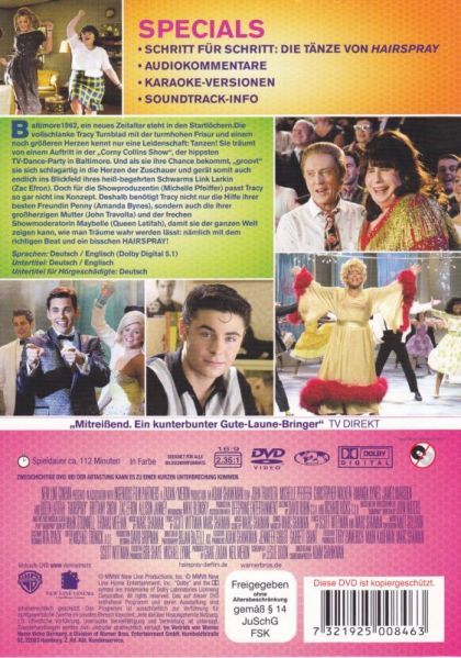 It's 1962 and change is in the air in Baltimore. Tracy Turnblad, a girl with big hair and big dreams, has only one passion in life - to dance on The Corny Collins Show. When her chance arrives, she grooves her way into instant stardom and the eyes of teen dream Link Larkin (Zac Efron). But with the program's scheming stage manager (Michelle Pfeiffer) against her, trend-setting Tracy will need the help of her best friend Penny (Amanda Bynes), her big-hearted mother (John Travolta) and sassy co-host Motormouth Maybelle (Queen Latifah) to show the world that all it takes to make a dream come true is a toe-tappin' beat and a little Hairspray!