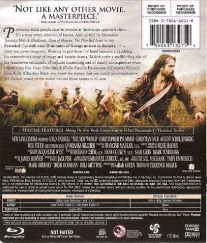 The Criterion Collection: This singular vision of early seventeenth-century America from Terrence Malick is a work of astounding elemental beauty, a poetic meditation on nature, violence, love, and civilization. It reimagines the apocryphal story of the meeting of British explorer John Smith (Colin Farrell) and Powhatan native Pocahontas (Q’orianka Kilcher, in a revelatory performance) as a romantic idyll between spiritual equals, then follows Pocahontas through her marriage to John Rolfe (Christian Bale) and her life in England. With art director Jack Fisk’s raw re-creation of the Jamestown colony, Emmanuel Lubezki’s marvelous, naturally lit cinematography, and James Horner’s soaring musical score, The New World is a film of uncommon power and technical splendor, one that shows Malick at the height of his visual and philosophical powers.