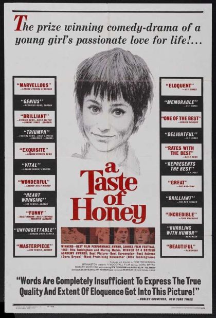 The revolutionary British New Wave films of the early 1960s were celebrated for their uncompromising depictions of working-class lives and relations between the sexes. Directed by Tony Richardson, a leading light of that movement, and based on one of the most controversial plays of its time, A Taste of Honey stars Rita Tushingham, in a star-making debut role, as a disaffected teenager finding her way amid the economic desperation of industrial Manchester, and despite an absent, self-absorbed mother. With its unapologetic identification with social outcasts and its sensitive, modern approach to matters of sexuality and race, Richardson’s classic is a still startling benchmark work of realism.