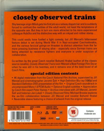 Jiri Menzel's funny, tragic 1966 film, set during the years of Germany's occupation of Czechoslovakia, may be admired today more out of nostalgia than anything, but in fact it holds up very well as a wry satire from the years of the Czech New Wave. Vaclav Neckar stars as an unambitious youth whose chief preoccupation is a wish for sex, but who secondarily sees the draw of joining the organized Resistance movement. The latter, however, would require energy and focus, and Neckar's character--who does as little work as possible as an apprentice railway platform guard--prefers the inertia of his small-town depot. Spending his time observing the philandering of an older guard, keeping clear of his wild-eyed boss, and flirting with the female conductor of a passing train, the young hero has his priorities in order but must deal with an increasing responsibility to a larger rebellion. The film has a nice mix of rural lethargy, surreal hints, and comic knowingness about the landscape of teenage ambivalence. Finally, there is something else: the shock of a confrontation between dreams and real-world obligation, particularly in a world gone mad through no fault of one's own. --Tom Keogh
