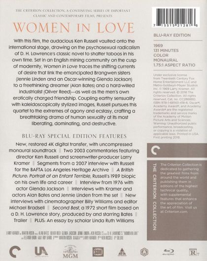 Close friends Rupert Birkin and Gerald Crich begin romances with siblings Ursula and Gudrun Brangwen. After the couples wed, they take a joint honeymoon to Switzerland, where things begin happily -- but they become increasingly complicated as the trip continues. Rupert and Ursula are determined to stay faithful to one another, while the aloof Gerald and the eccentric Gudrun turn to infidelity and sexual exploration.