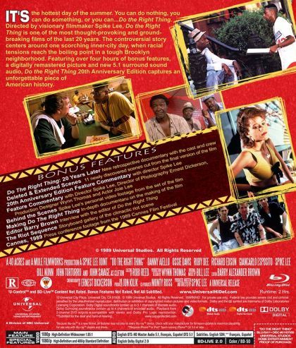 Do The Right Thing takes place on a hot summer day in Brooklyn and depicts the racial conflict between an Italian American pizza restaurant owner and his African American customers and how things erupt into a violent outbreak. This Spike Lee Joint touches on themes of segregation and apartheid in the USA.