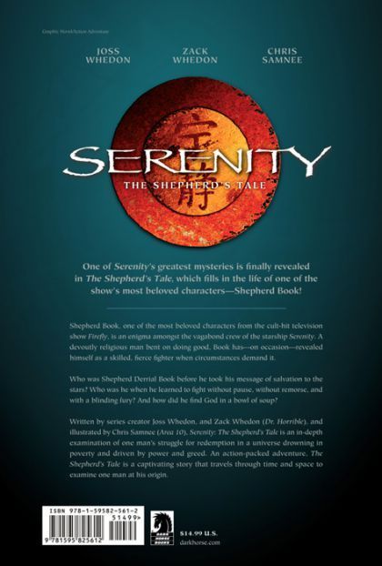 One of Serenity's greatest mysteries is finally revealed in The Shepherd's Tale, filling in the life of one of the show's most beloved characters—Shepherd Book! Who was Book before meeting Mal and the rest of the Serenity crew? How did he become one of their most trusted allies? And how did he find God in a bowl of soup? Answers to these and more questions about Book's past are uncovered in this original graphic novel by rising stars Zack Whedon (Dr. Horrible, Terminator, Fringe) and Chris Samnee (Blackest Night: Tales of the Corps, Daredevil). A pivotal chapter in the ongoing Serenity saga, The Shepherd's Tale is also a rollicking, action-packed epic in its own right! • "Dark Horse's Serenity displays the key ingredients of the series in a substantial and entertaining way."—BrokenFrontier.com