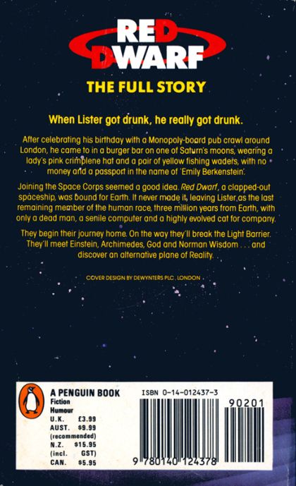 When Lister got drunk, he really got drunk. After celebrating his birthday with a Monopoly-board pub crawl around London, he came to in a burger bar on one of Saturn's moons, wearing a lady's pink crimplene hat and a pair of yellow fishing waders, with no money and a passport in the name of 'Emily Berkenstein'. Joining the Space Corps seemed a good idea. Red Dwarf, a clapped-out spaceship, was bound for Earth. It never made it, leaving Lister as the last remaining member of the human race, three million years from Earth, with only a dead man, a senile computer and a highly evolved cat for company. They begin their journey home. On the way they'll break the Light Barrier. They'll meet Einstein, Archimedes, God and Norman Wisdom... And discover an alternative plane of Reality.