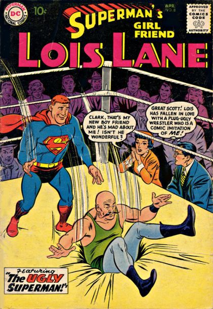 "The Ugly Superman": Perry White assigns Lois Lane to cover a wrestling match so that it can be reported from a "women's angle". As she watches the matches she comes to realize that this form of wrestling is not a sport per-se but sheer sensationalist entertainment. She focuses her attention more closely when the next match features a wrestler named "The Ugly Superman". Although he is winning the fight against the "Dutch Devil", the Ugly Superman is booed due to his physical appearance to the point where the crowd is throwing objects onto the stage after the Ugly Superman wins the match.