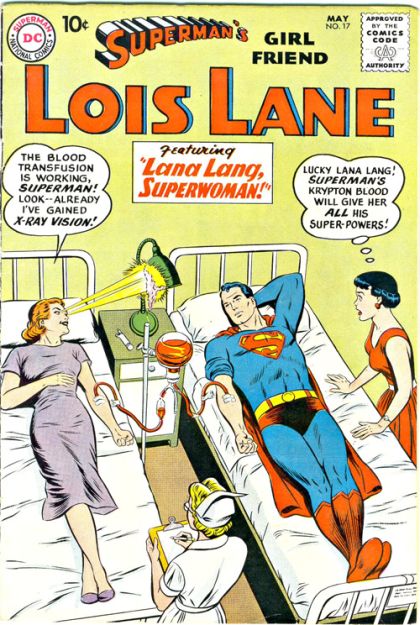"Lana Lang, Superwoman": To save the Earth, Superman agrees to let Brainiac subject Lois Lane and Lana Lang to a bomb blast--but first he gives them both super-powers with a transfusion of his own blood.