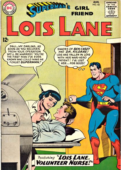 "Lois Lane - Volunteer Nurse!": As a volunteer nurse, Lois falls for a handsome patient in an iron lung, not suspecting that he is a member of the deadly 14-Karat Gang.