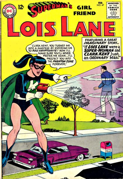 "The Super-Life of Lois Lane!": In the Fortress of Solitude, Lois Lane asks Superman's computer to show her what her life would have been like if she had been a Kryptonian come to Earth, rather than Superman. It shows her adopting the costumed identity of "Krypton Girl", with Clark Kent as a pest trying to uncover her secret identity.