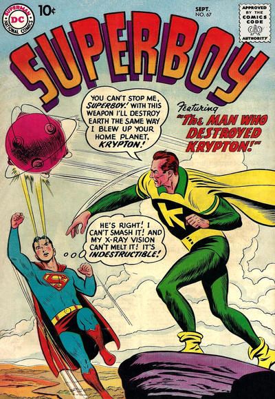 8."The Man Who Destroyed Krypton!" (Superboy, Klax-Ar, Lana Lang, Ma and Pa Kent, Jor-El (flashback), Superboy Robot. Written by Bill Finger, penciled and inked by George Papp. Reprinted in Superman Annual #5 and Superboy Spectacular #1.