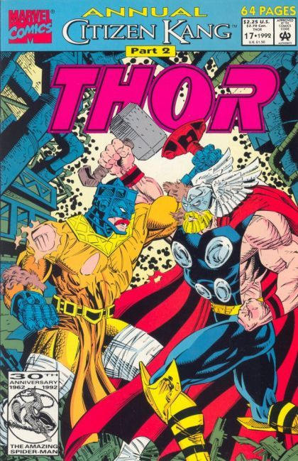 Citizen Kang: Part 2 (of 4) - The Avengers acting chairperson, Black Widow, sends the new Thor to investigate both the Vision and Captain America's disappearances. Thor locates Chronopolis and, unlike Captain America, is able to fly over various cross-time eras, finally settling down in 10th Century Norway, among his worshipers. however, the Norse are in the midst of battling the Celts in the British Isles, and Thor soon finds himself up against the wizardry of Prester John and the Evil Eye! Meanwhile, Ravonna convinces Dr. Druid that Kang is a menace to everyone on Earth and must be stopped.