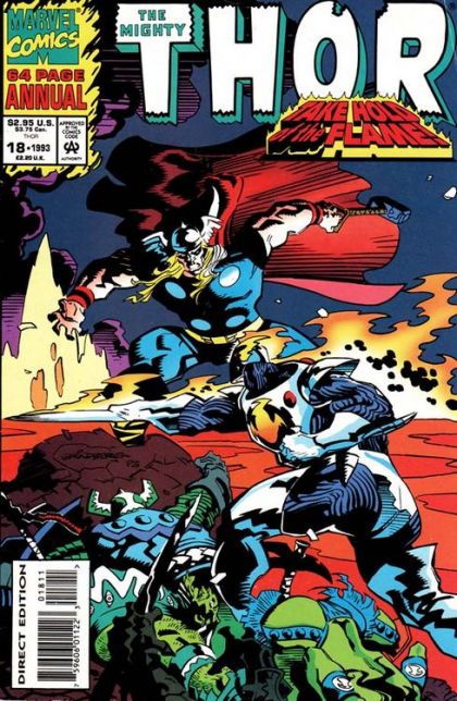 Polybagged with an exclusive rookie trading card, Thor Annual introduces a new character, the Flame. When this mysterious individual wreaks havoc in the hills of Asgard, Thor rushes to stop him!